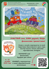 Приглашаем Вас принять участие в VI Краевом семейном финансовом фестивале, который пройдет в Красноярском крае с 6 по 12 октября 2025 года.